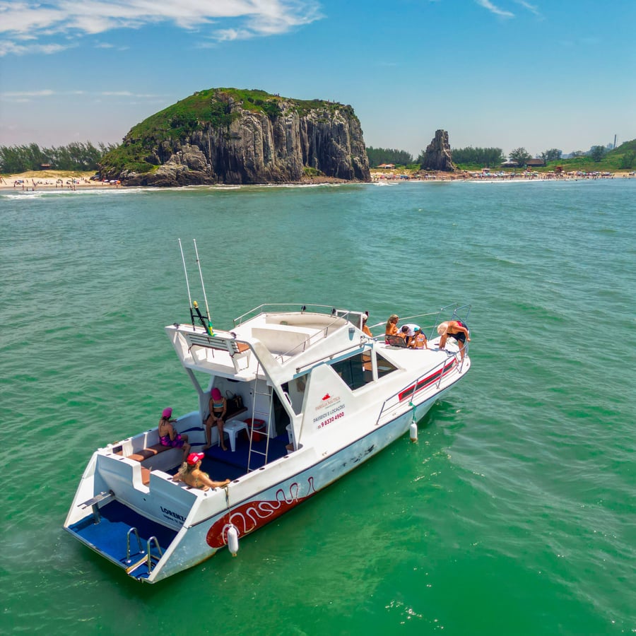 Tenha uma vivência divertida reunindo família e amigos em um passeio de lancha, explorando as belezas naturais do Rio Mampituba e das praias de Torres.