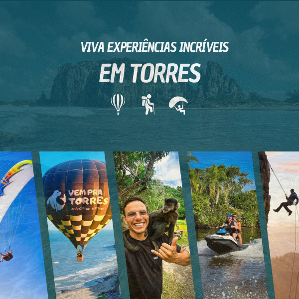 Viva incríveis experiências em Torres! Nossa Agência de Turismo é sua porta de entrada para momentos inesquecíveis em um paraíso no litoral gaúcho. De praias de tirar o fôlego a aventuras em meio à natureza exuberante, oferecemos pacotes personalizados que transformarão sua visita em uma jornada única. Venha explorar Torres com quem conhece cada segredo e desfrute de momentos incríveis sob o sol do sul do Brasil.