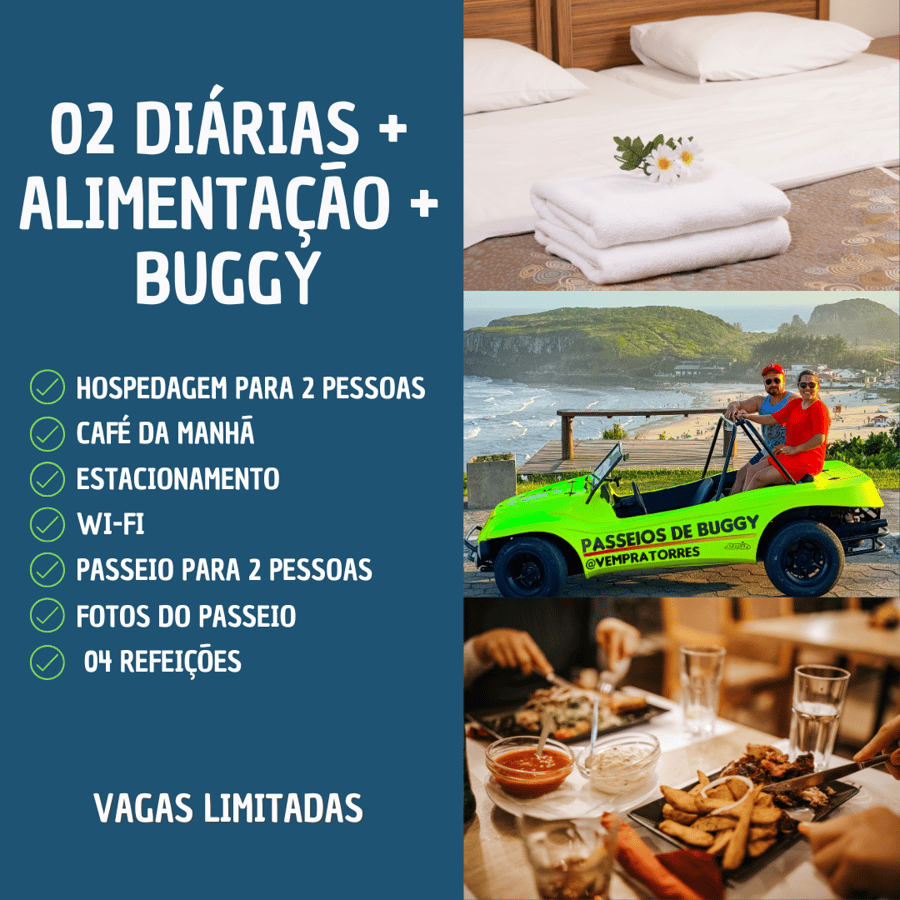 Desfrute de uma emocionante aventura em Torres com passeio de buggy, hospedagem confortável e deliciosas refeições inclusas!