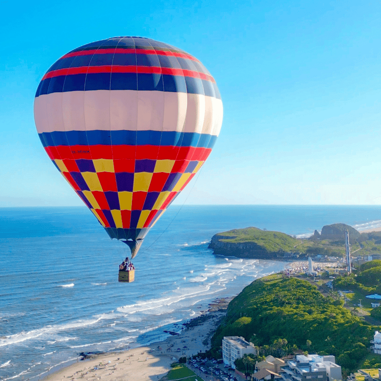 A aventura continua com um voo de balão sobre as paisagens deslumbrantes de Torres. Sinta a emoção de flutuar suavemente pelos céus, admirando vistas panorâmicas de tirar o fôlego. Este passeio proporciona um momento único de conexão e maravilhamento, permitindo que você e seu parceiro apreciem a beleza natural da região de uma perspectiva única.