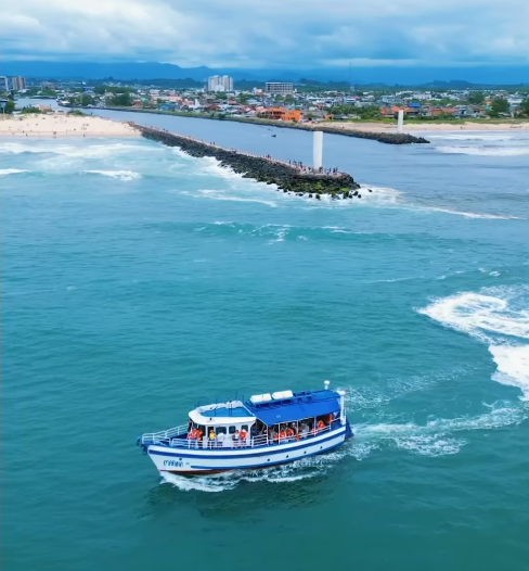 Tenha uma vivência divertida reunindo família e amigos em um passeio de lancha, explorando as belezas naturais do Rio Mampituba e das praias de Torres.